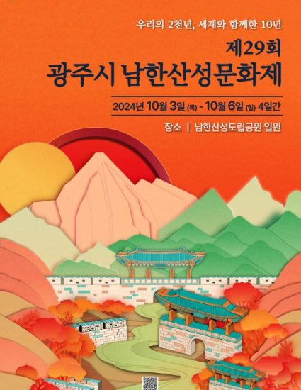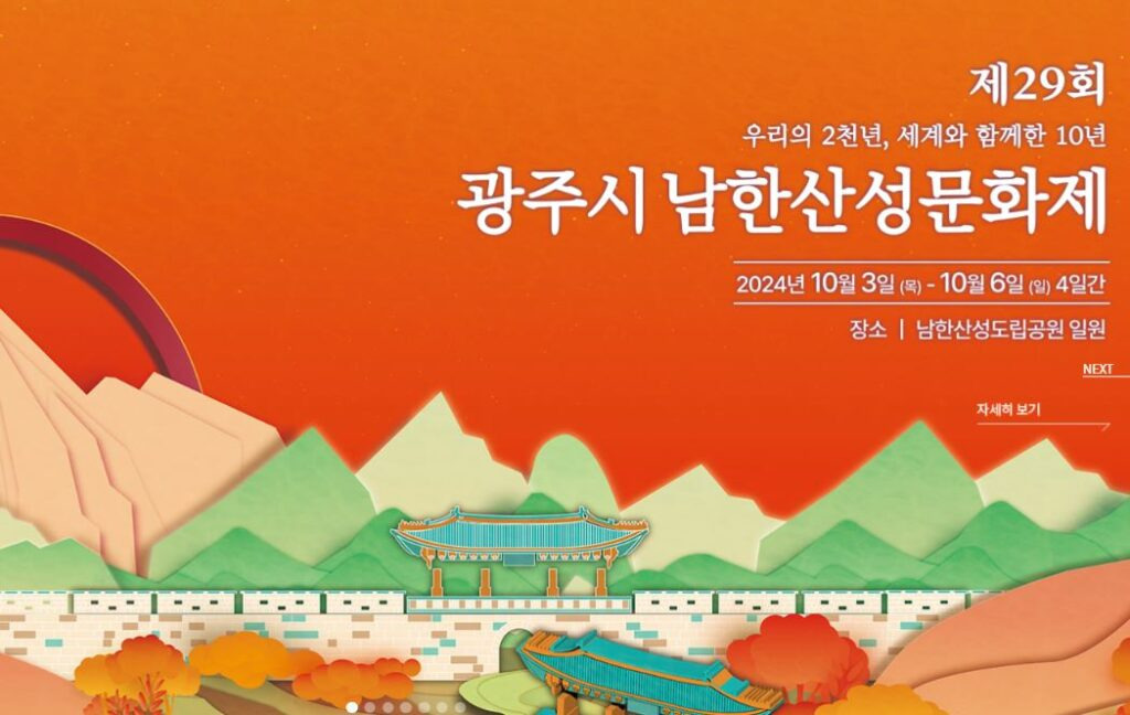 경기도 광주시 천혜의 자연환경과 2천년 역사가 어우러진 광주시 남한산성문화제가 2024년 10월 3일부터 6일까지 4일간 남한산성도립공원 일원에서 개최합니다.