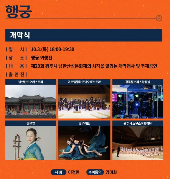 -광주시 남한산성문화제가 2024년 10월 3일부터 6일까지 4일간 남한산성도립공원 일원에서 개최-
