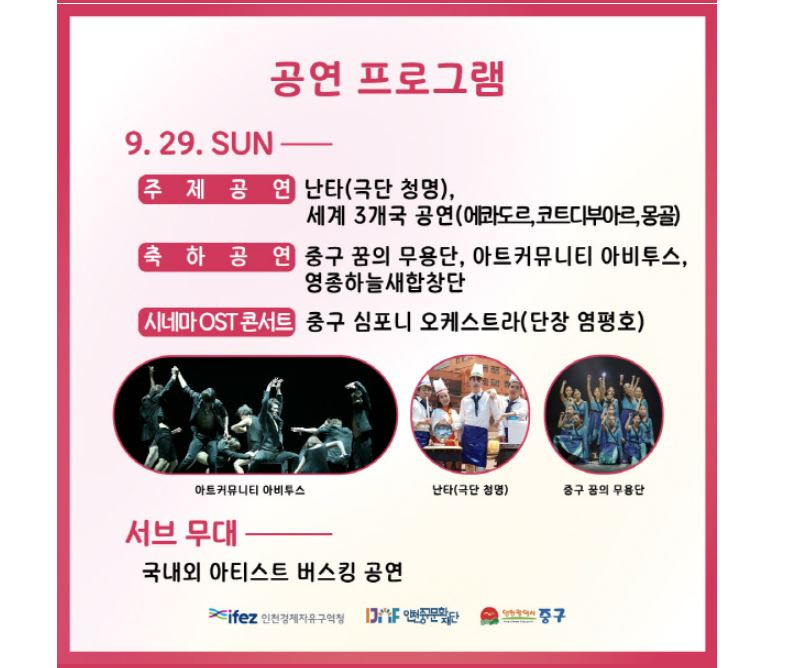 이번 해에 3년차를 맞이하는 2024 IFEZ FESTA 영종 세계음식축제는 인천경제자유구역청과 인천중구문화재단이 주최 및 주관하고 인천광역시 중구가 후원합니다.