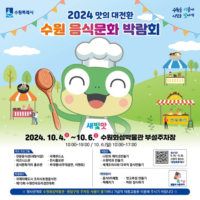2024 수원음식문화박람회가 10월 4~6일 수원화성박물관 부설주차장에서 열린다.