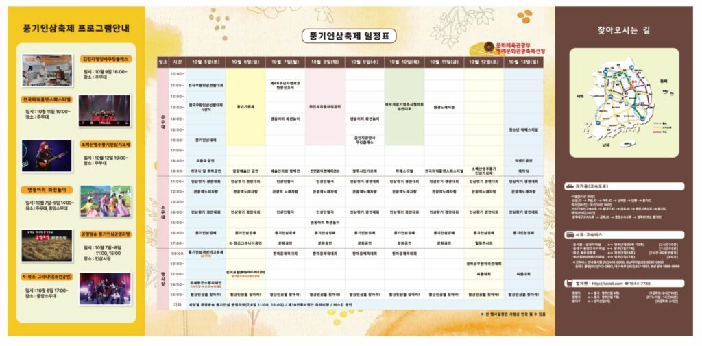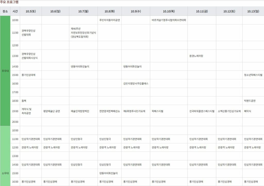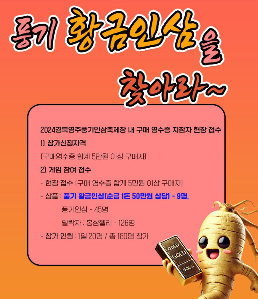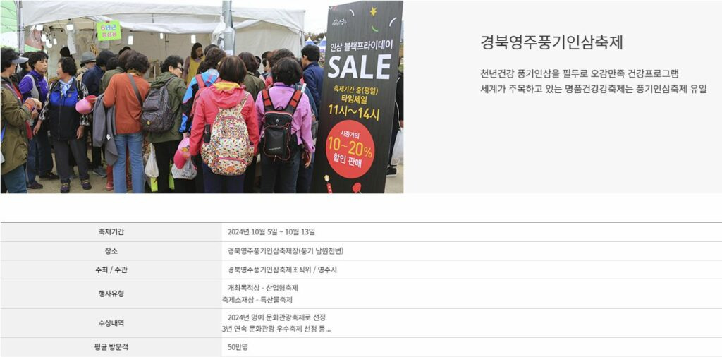 -풍기인삼축제가 2024년 10월 5일부터 13일까지 9일간 영주시 풍기인삼문화팝업공원 및 남대천 일원에서 개최-