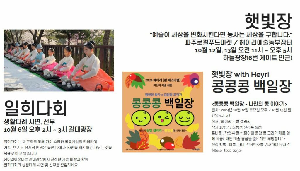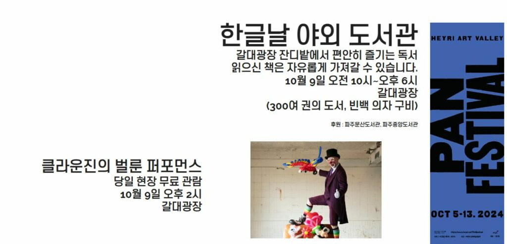 – 2024 헤이리 판 페스티벌이 10월 5일부터 13일까지 9일간 파주 헤이리 마을 일원에서 개최-