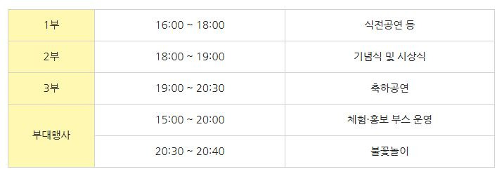 축제와 공연 세부내용은 축제주관기관으로 문의하여 주시길 바랍니다.