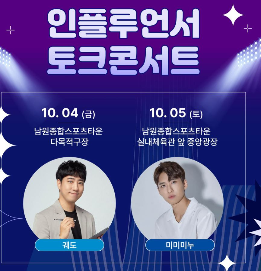 인플루언스 토크콘서트로 궤도와 미미미누가 진행하는 무대를 관람할 수 있습니다.