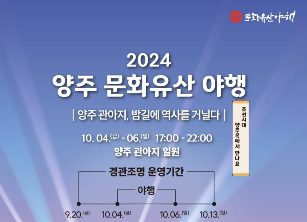 – 야간형 문화향유 프로그램인 양주 문화유산 야행이 2024년 10월 4일부터 6일까지 개최-
