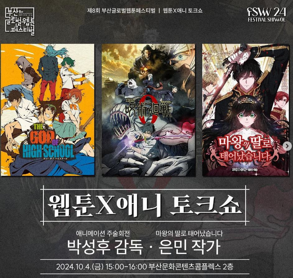 -부산글로벌웹툰페스티벌이 2024년 10월 3일부터 6일까지 소향씨어터 신한카드홀에서 개최-
