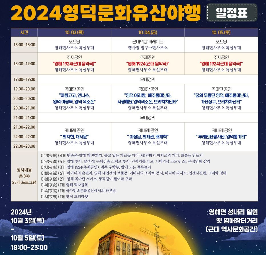 -영덕 문화유산 야행이 2024년 10월 3일부터 5일까지 영해면 성해리 일원에서 개최-