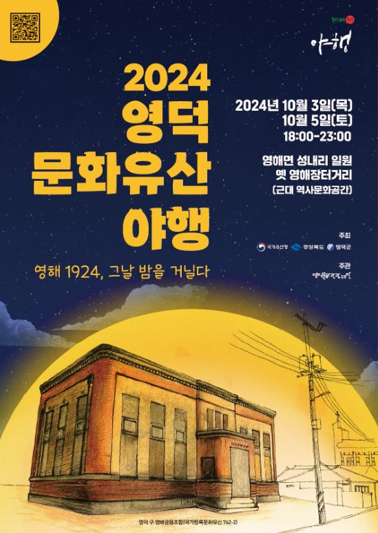 영해 1924 그날 밤을 거닐 수 있는 영덕 문화유산 야행이 2024년 10월 3일부터 5일까지 영해면 성해리 일원에서 개최합니다.