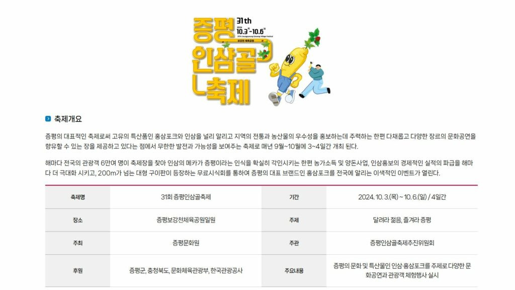 -10월 3일부터 6일까지 개최되는 제31회 증평인삼골축제가 개최-