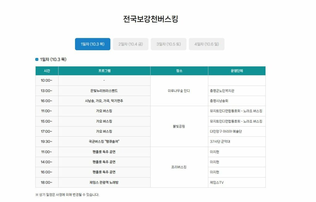 축제와 공연 세부내용은 축제주관기관으로 문의하여 주시길 바랍니다.