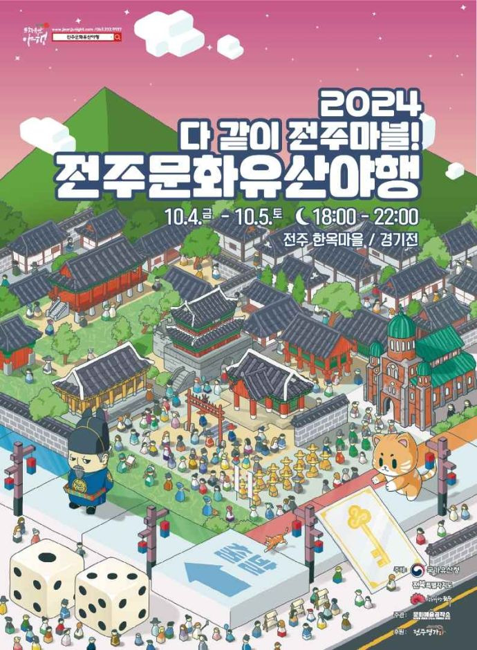 구체적으로 경기전 광장에서는 △문화유산 풍류 한마당(지역 예술가 공연)이 펼쳐지며, 그 일대에서는 △태조와 야행이(축제 마스코트와 만남) △문화유산 오락 등용문(퀴즈 대결) 등 다양한 프로그램들이 펼쳐진다.
