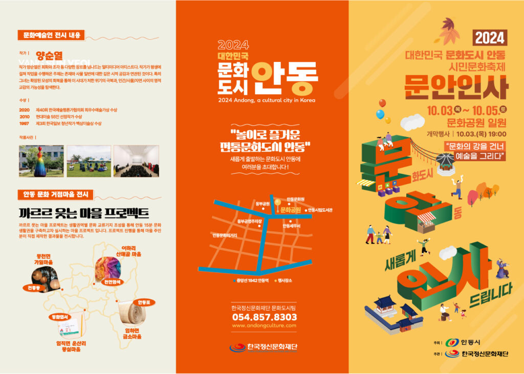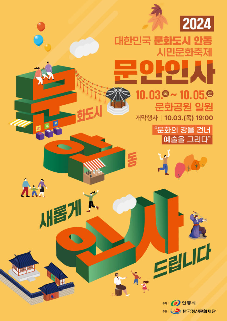 안동시와 한국정신문화재단은 대한민국 문화도시 조성 예비시범사업의 일환으로 ‘대한민국 문화도시 안동’과 문화복합공간의 출범을 알리는 2024 안동 시민문화축제 ‘문안인사’를 개최한다.