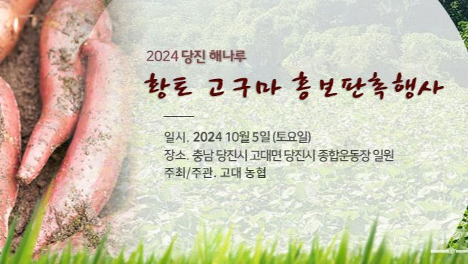 당진시 해나루고구마 홍보판촉행사가 10월 5일 당진시 고대종합운동장 일원에서 개최된다.