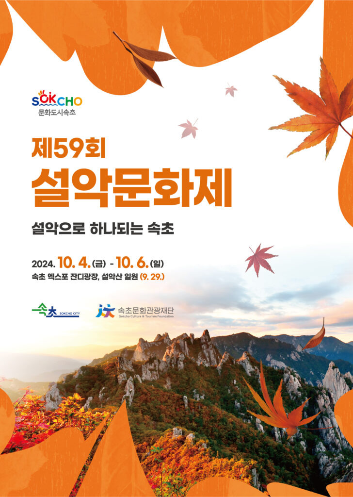 속초시가 주최하고 (재)속초문화관광재단이 주관하는 제59회 설악문화제가 ‘설악으로 하나 되는 속초’를 슬로건으로 엑스포 잔디광장 일원에서 오는 10월 4일부터 6일까지 3일간 개최된다.