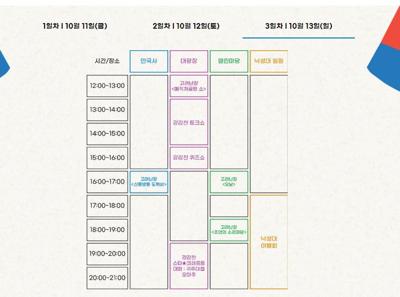 고려시대로 타임슬립 한 듯 더욱 풍성한 프로그램으로 관악의 가을을 가득 채울 예정입니다.
