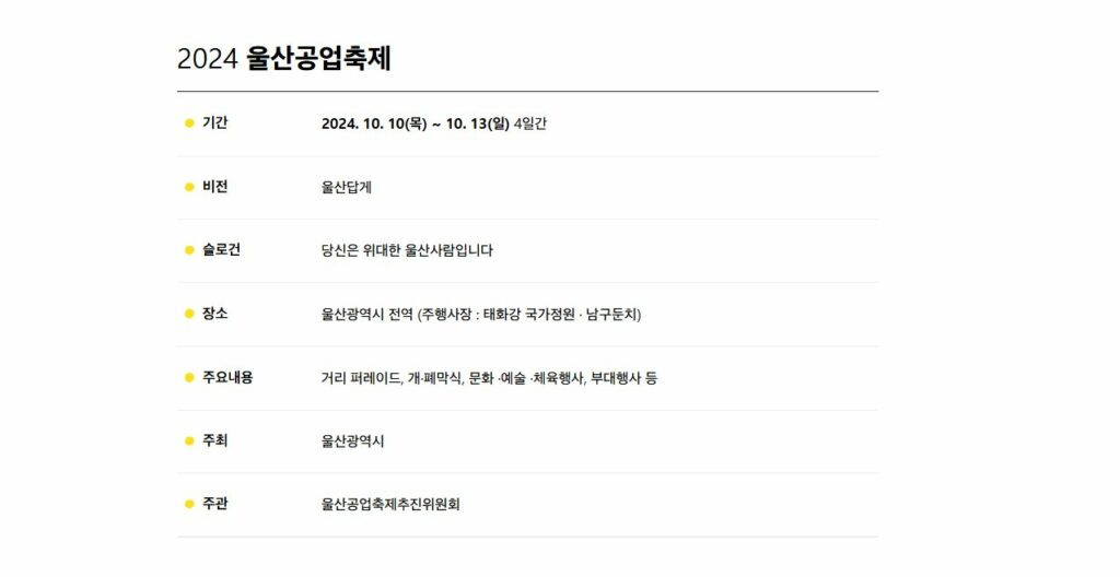 -울산공업축제가 2024년 10월 10일부터 13일까지 울산광역시 전역에서 개최-