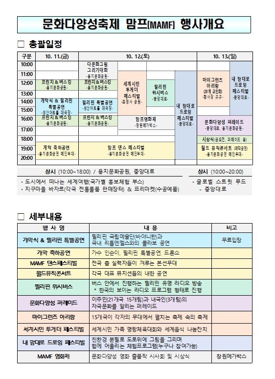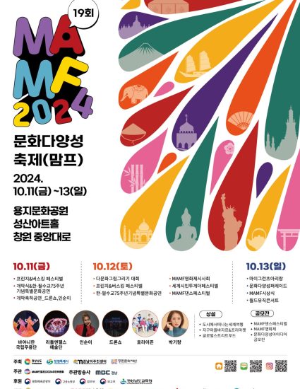 -제19회 문화다양성축제 MAMF가 2024년 10월 11일부터 13일까지 용지문화공원, 성산아트홀, 용지공원, 중앙대로 일원에서 개최-