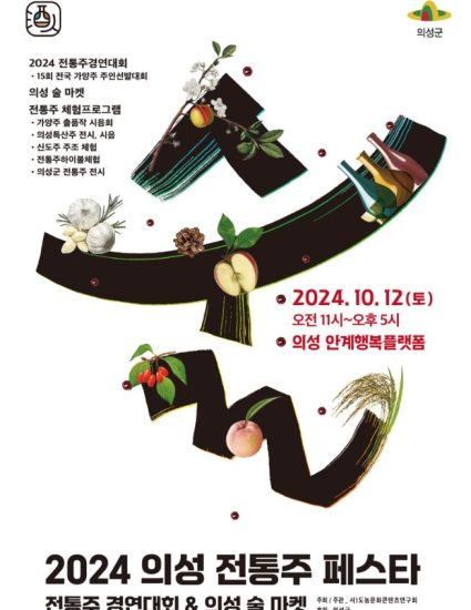 전국의 전통주 고수들의 출품주와 직접 전통주를 빚고 맛볼 수 있고 의성의 청년 양조인들의 전통주도 구매할 수 있는 의성 전통주 페스타가 2024년 10월 12일에 의성 안계행복플랫폼에서 개최합니다.