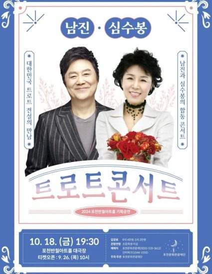 포천문화관광재단(대표이사 이중효)은 오는 10월 18일 포천반월아트홀 대극장에서 2024 포천반월아트홀 기획공연 ‘남진 심수봉 트로트 콘서트’를 선보인다.