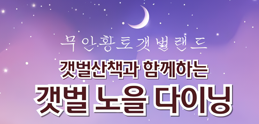 행사는 갯벌랜드의 아름다운 경치를 감상하며 몸 건강을 지킬 수 있는 ‘갯벌 산책’, 아름다운 갯벌 노을을 배경으로 다과와 재즈공연을 즐길 수 있는 ‘다이닝’으로 진행되어 한여름 무더위에 지친 관광객들에게 마음 힐링과 갯벌랜드의 다양한 매력을 선사할 예정이다.