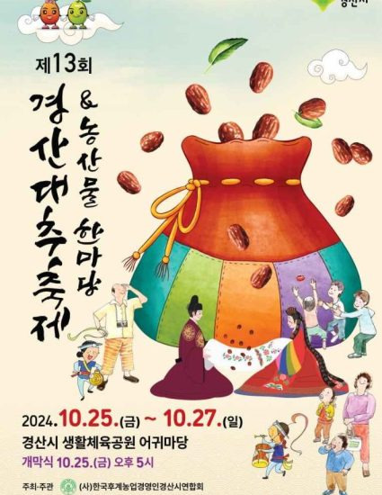 대한민국 대추 생산1위를 자랑하는 경산의 대표농산물을 테마로 하는 경산대추축제 & 농산물한마당 축제가 2024년 10월 25일부터 27일까지 경산시 생활체육공원 어귀마당에서 개최합니다.