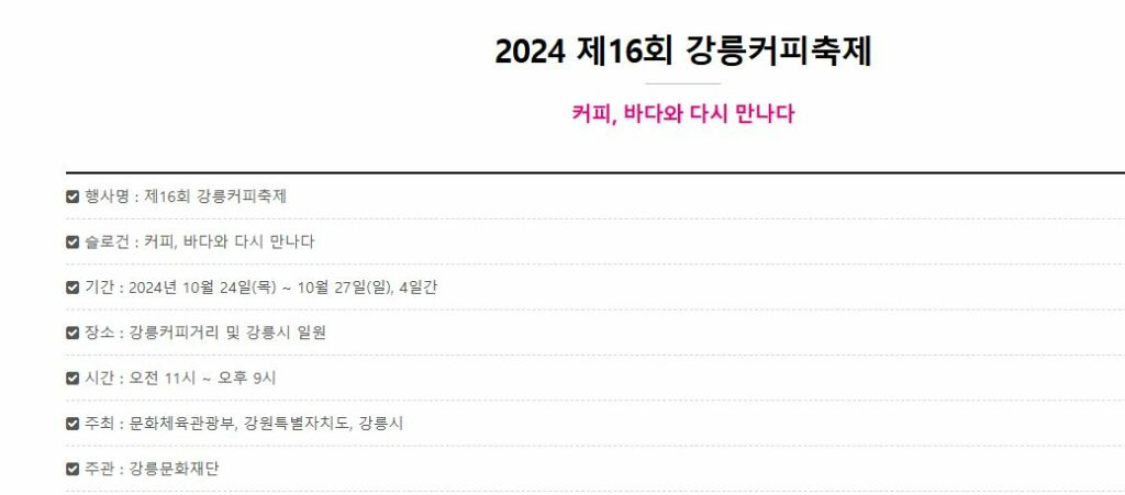 -강릉커피축제가 2024년 10월 24일부터 27일까지 강릉커피거리 일원에서 개최-