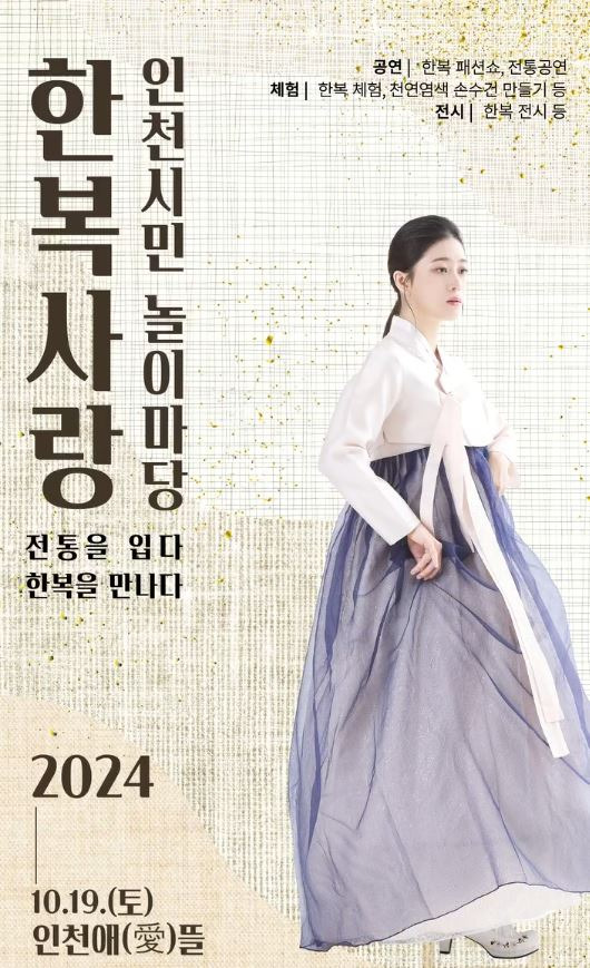 한복의 아름다움과 전통문화를 널리 알리고, 현대와 전통의 조화를 통해 한복의 가치를 보여주고자 하는 한복사랑 인천시민 놀이마당 축제가 2024년 10월 19일 인천애(愛)뜰에서 개최합니다.