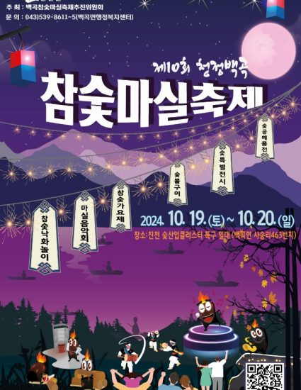 백곡참숯마실축제추진위원회가 주관하고 진천군이 후원하는 제10회 청정백곡 참숯마실축제는 진천 백곡지역의 특화자원인 참숯을 테마로 한 축제다.