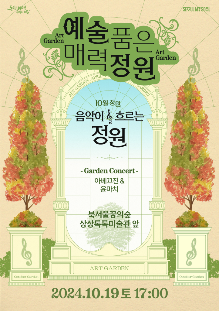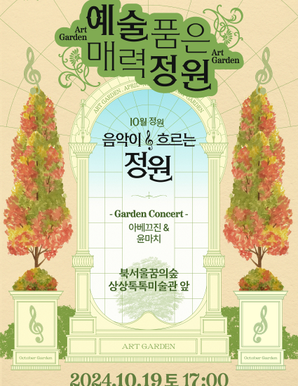 가을이 무르익어가는 10월의 주말. 공원의 아름다운 풍경과 함께 감미로운 음악을 감상할 수 있는 <음악이 흐르는 정원 10월> 프로그램이 북서울꿈의숲 상상톡톡미술관 앞 잔디밭에서 진행된다.