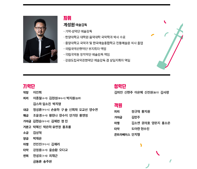 이정엽 국립부산국악원 원장은 “국민들을 위한 문화공간으로의 확대와 참여의 장을 만들기 위해 노력할 것이며 모두가 함께 할 수 있는 축제의 장, 문화와 함께하는 건강한 삶을 살 수 있도록 공연문화 분위기 조성을 위해 혼신의 힘을 다하겠다.”라고 밝혔다.