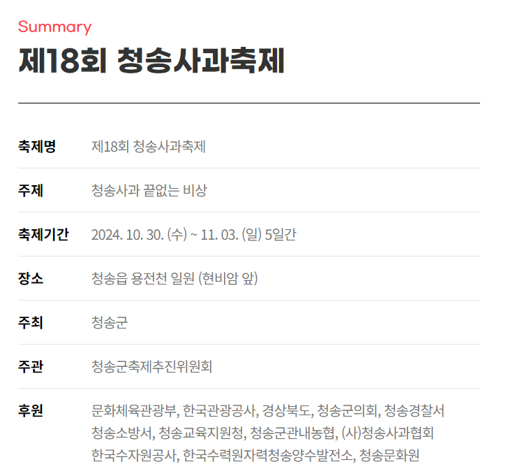 온라인과 오프라인 모두에서 2024년 청송사과를 맛볼 수 잇는 다양한 프로그램이 펼쳐질 예정입니다.