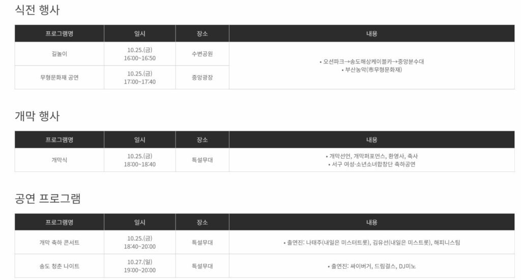 행사장소 : 송도해수욕장(부산광역시 서구 송도해변로 100)