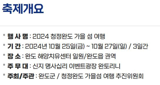 -청정완도 가을섬 여행이 2024년 10월 25일부터 27일까지 개최-