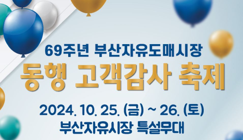 부산자유도매시장은 신발, 의류, 생화(꽃) 등 다양한 상품을 도·소매로 판매하는 특화시장으로, 이번 행사는 오랜 시간 시장을 찾아준 고객들에게 감사의 뜻을 전하고자 마련되었다. 축제 기간에는 상인과 고객이 함께하는 노래자랑 대회, 기념품 룰렛 이벤트, 온누리 상품권 증정 등 다채로운 경품 행사가 진행될 예정이다.