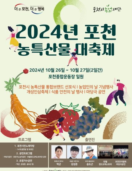 (재)포천농업재단은 오는 26일부터 27일까지 양일간 포천종합운동장에서 2024 포천농특산물 대축제를 개최한다.