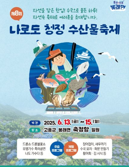 이번 축제는 봉래면 축제추진위원회가 주관하며, 수국이 만개하는 초여름 바다를 배경으로 지역 대표 수산물을 마음껏 즐길 수 있도록 다채로운 프로그램이 마련된다.