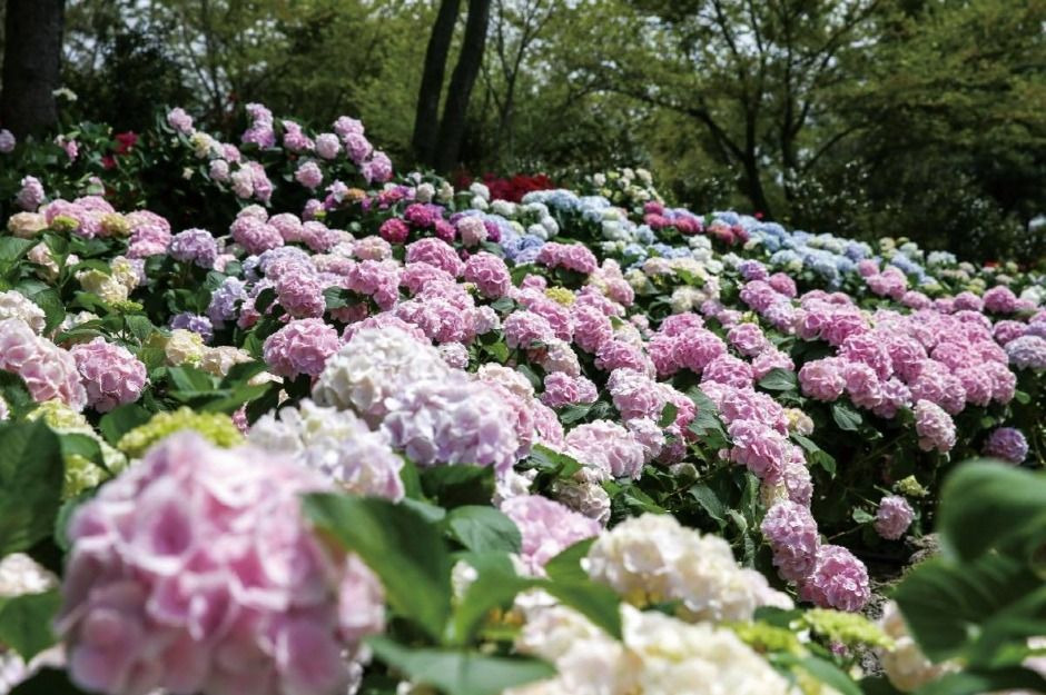 정성껏 키운 다양한 품종의 수국들이 공원 전역에 가득 피어, 방문객들의 눈과 마음을 사로잡습니다.