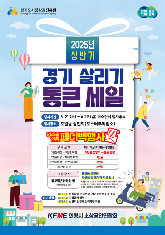 의왕시소상공인연합회와 의왕시 관내 7개 상권은 침체 된 경기 활성화를 위해“2025년 경기 살리기 통큰 세일”을 진행한다.