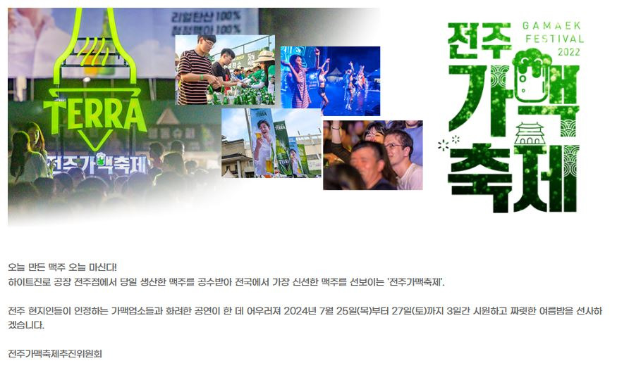 하이트진로 공장 전주점에서 당일 생산한 맥주를 공수받아 축제가 진행됩니다.