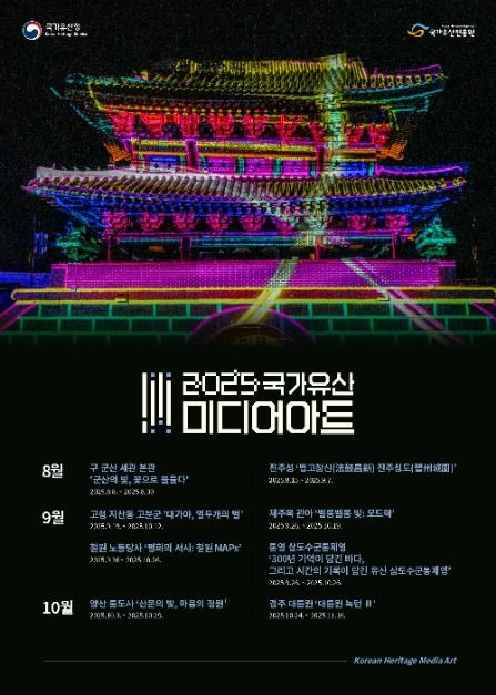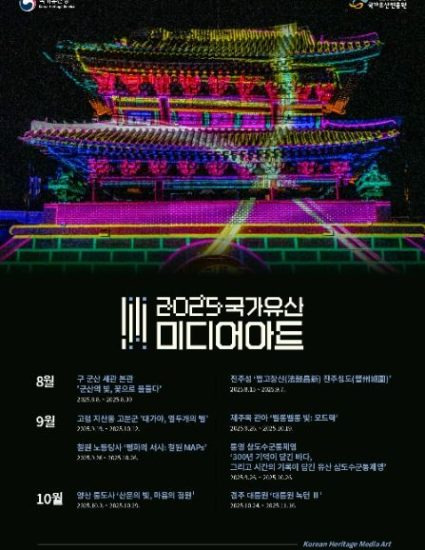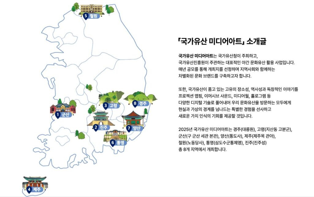 미디어아트로 반짝 빛나는 우리 국가유산 2025 국가유산 미디어아트가 각 지역별로 진행됩니다.
