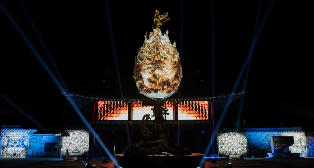 국가유산 미디어아트는 국가유산청이 주최하고 국가유산진흥원이 주관하는 대표적인 야간 문화유산 활용사업입니다.