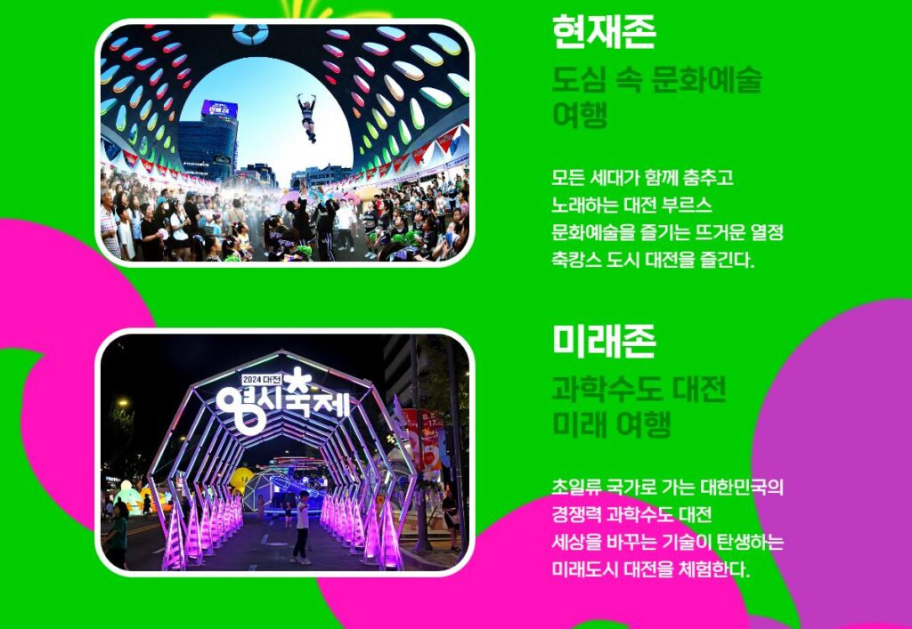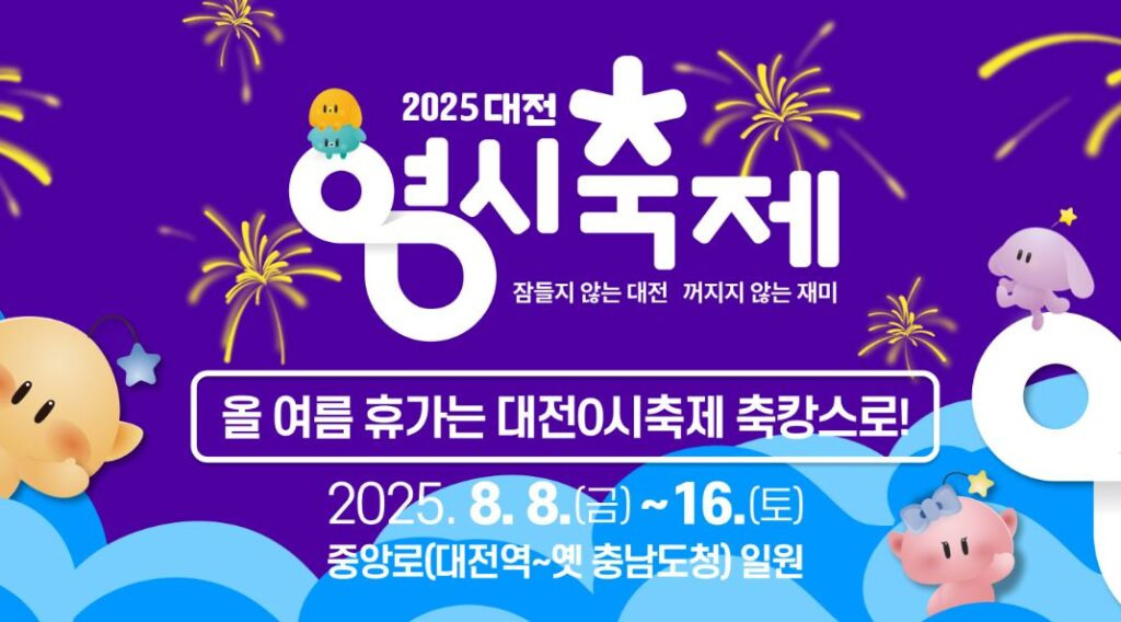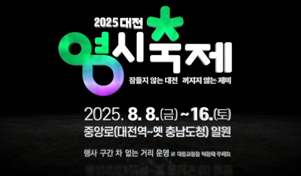 대전이 가진 모든 재미를 꺼지지 않게 지속시킨다는 의미의 ‘잠들지 않는 대전 꺼지지 않는 재미’라는 축제의 캐치프레이즈를 필두로 하는 대전 0시 축제가 2025년 8월 8일부터 16일까지 개최합니다.