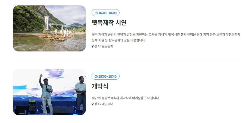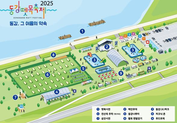 2025년 동강 뗏목 축제가 진행되는 영월동강둔치에서는 다양한 공연과 프로그램이 준비되어 펼쳐집니다.