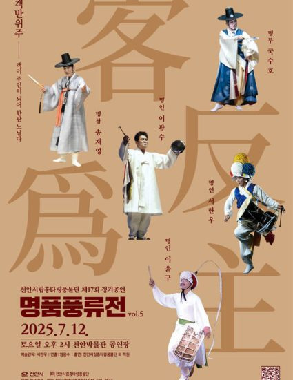 천안시립흥타령풍물단이 오는 12일 천안박물관에서 제17회 정기공연 ‘객반위주(客反爲主)-명품풍류전’을 개최한다.