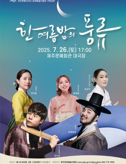 이희진 문화예술진흥원 원장은 “이번 공연은 전통문화의 아름다움과 깊이를 도민들과 함께 나누는 뜻깊은 자리가 될 것”이라며, “더운 여름날 시원한 공연을 통해 도민들의 문화적 감성이 충전되기를 바란다”고 전했다.