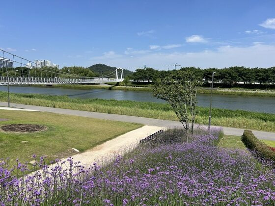 순천시(시장 노관규)가 그린아일랜드 사면과 동천 수변을 따라 보랏빛 ‘버들마편초’ 꽃물결을 연출하며, 한여름의 생동감을 더하고 있다.