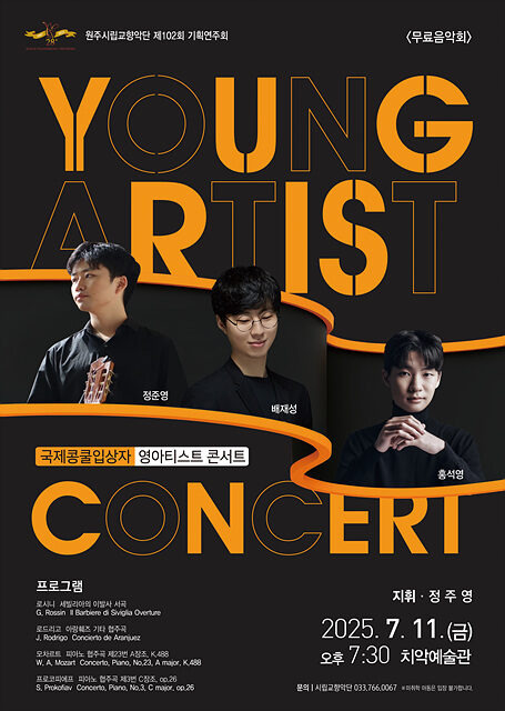 원주시립교향악단(상임지휘자 정주영)은 차세대 클래식 스타들과 함께하는 특별한 무대, 제102회 기획연주회 ‘국제콩쿨입상자 영 아티스트콘서트’를 오는 11일(금) 오후 7시 30분 치악예술관에서 개최한다.