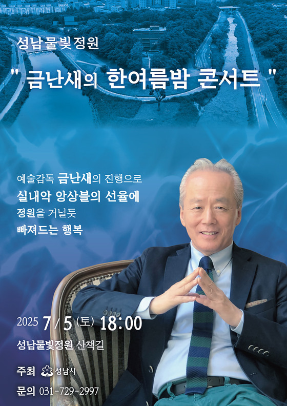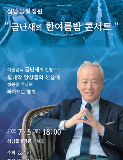성남시(시장 신상진)는 오는 7월 5일 오후 6시 성남물빛정원 두물길 산책로 야외무대(분당구 구미동 195번지)에서 ‘금난새의 한여름 밤 콘서트’를 연다.
