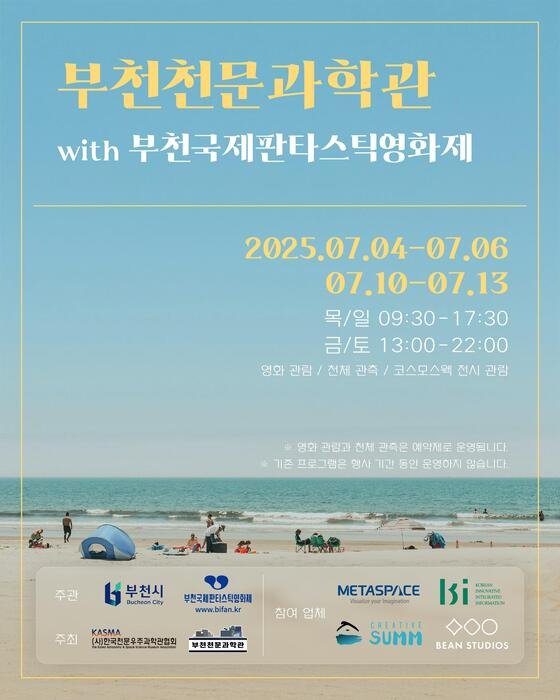 이종수 부천천문과학관 관장은 “이번 특별 상영회는 시민들이 과학을 더욱 가깝게 느끼는 계기가 될 것”이라며 “영화와 천체관측을 함께 즐기며 부천의 여름밤을 특별하게 보내길 바란다”고 말했다.