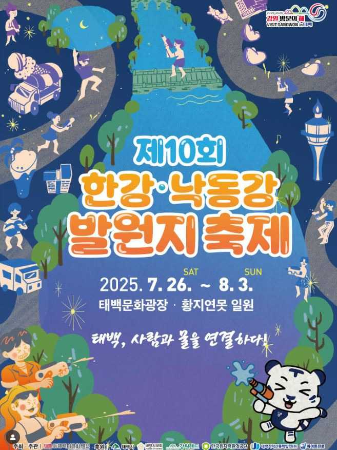 태백의 황지연못, 검룡소, 구문소, 통리 오로라 파크 등 가장 시원한 태백시 구석구석에서 다양한 프로그램을 만날 수 있는 제10회 한강·낙동강 발원지 축제가 2025년 7월 26일부터 8월 3일까지 개최합니다.